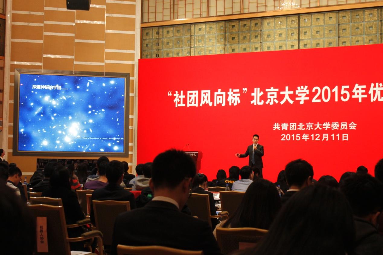 12月11日,“社团风向标”北京大学2015年优秀社团表彰会在英杰交流中心举行。全校多个单位的领导、各社团负责人、指导教师出席了此次大会。在大会上,北京大学青年天文学会荣获2015年“十佳社团”称号,青年天文学会的指导教师,物理学院天文学系张华伟老师获得社团优秀指导教师称号。