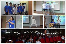 闭幕式结束后,同学们开启了“狂欢模式”,在联欢晚会中大秀才艺。吉他弹唱、太极拳、葫芦丝、小品、劲歌热舞等表演让人目不暇接,场上场下一片欢声笑语。最后,联欢晚会在《我爱北京天文馆》和《国际歌(天文版)》中结束。