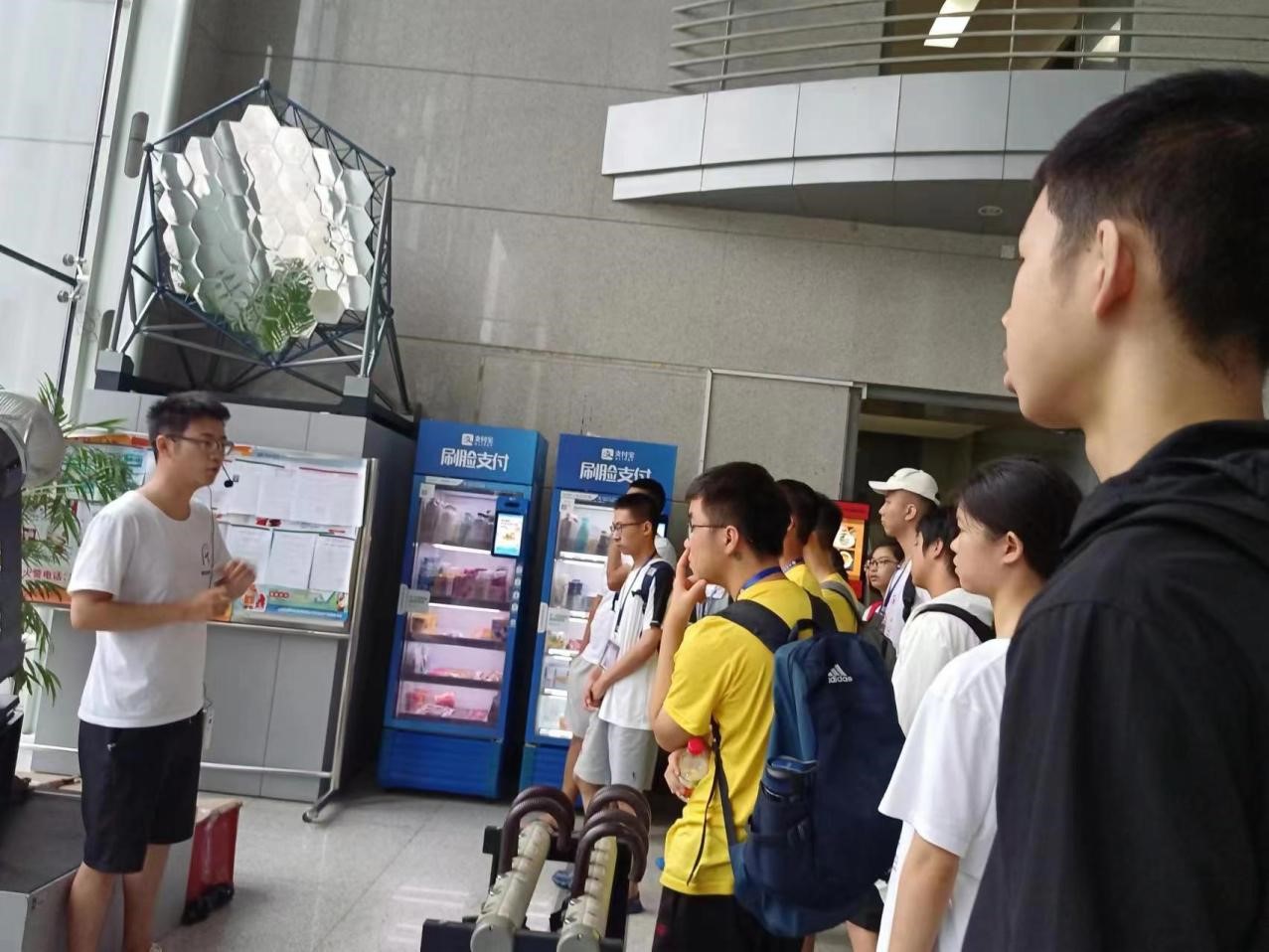 8月1日上午,在清华大学志愿者们的生动讲解中,同学们坐在大巴上参观了美丽的清华校园。随后奔赴中国科学院国家天文台,由梁艳春处长向同学们介绍了国家天文台雄厚的人才实力与众多的大科学项目。国家天文台的博士生们还带着同学们参观了相关天文设施。