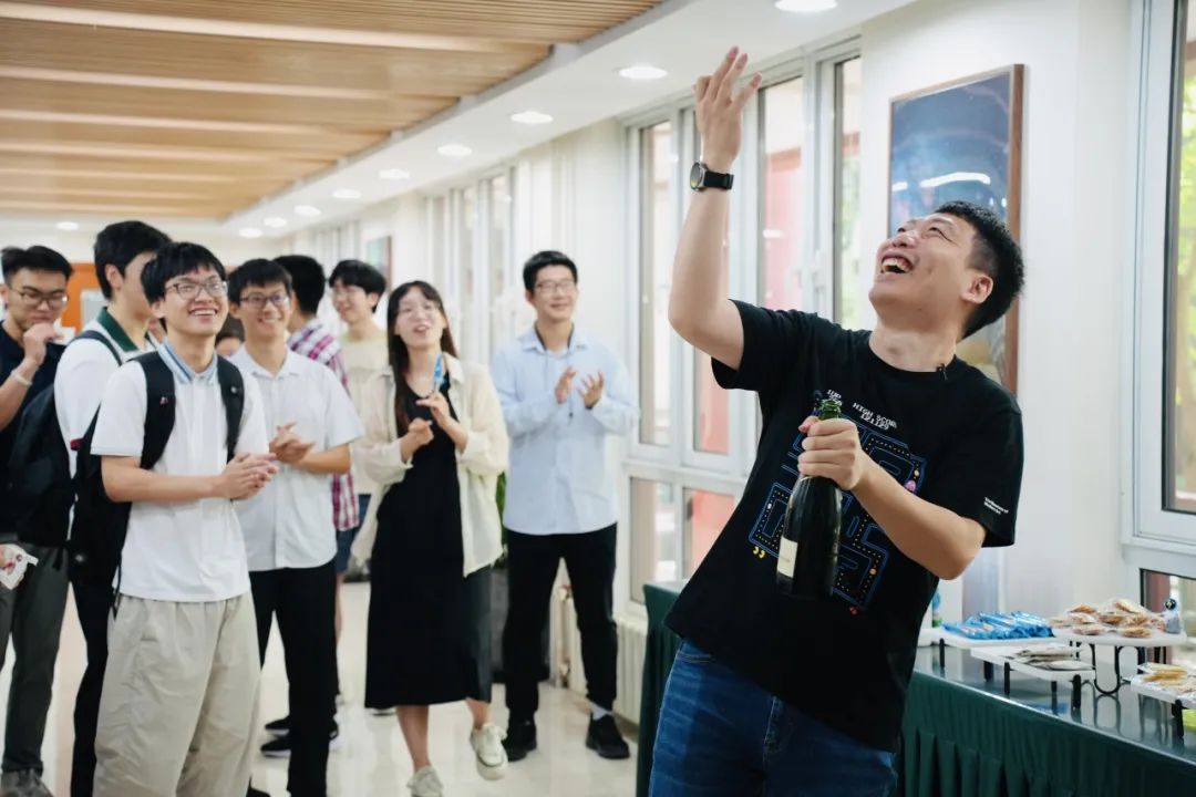 舒琦校友接着致辞, 他首先表示对科维理所将第一会议室命名为舒琦会议室深感荣幸。希望自己的捐赠能带动更多校友和社会人士,尽早将EAST项目建成,为中国未来的科学发展奠定坚实的基础。他还鼓励师弟师妹们将来学业有成后,能支持北大天文学科发起的望远镜项目的建设。在舒琦校友打开香槟的欢声笑语中, 舒琦会议室正式挂牌。参加揭牌仪式的还有天文系副主任张华伟教授、黎卓教授、科维理所邵立晶研究员以及北大天文学科的研究生们。