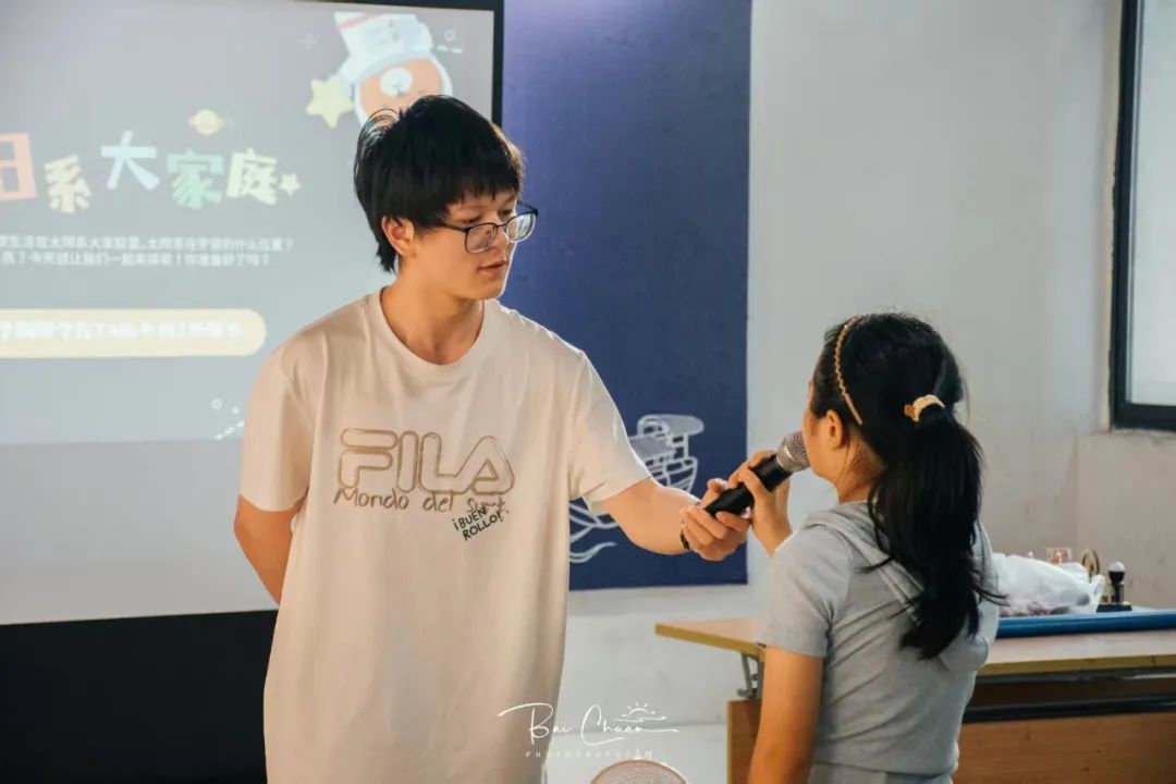 图八:天文班同学蔡漪鸿于黔南州图书馆进行科普时与小朋友互动